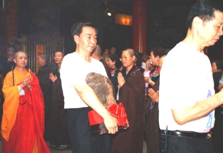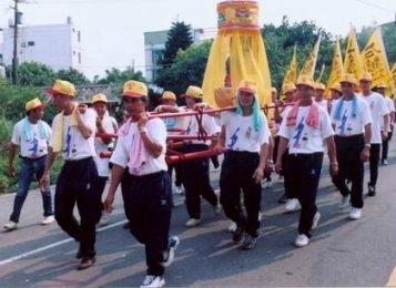 91.7.27 張鄉長捧抱石觀音像,放上聖轎。