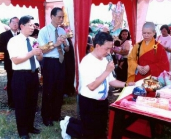 91.7.27 在巨大觀音像前,舉行簡單的祈安法會。