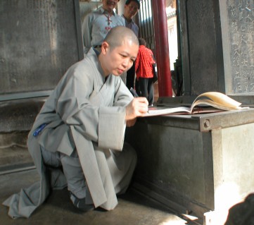 2002.04.02 下午參觀碑林博物館之時,昭慧法師乃於意見書上寫道:「『俗稱“尼姑”』四字請刪,因為『尼姑』二字對比丘尼有辱慢之語意。雖貴碑林博物館絕無惡意,但請避免為尚。」 |