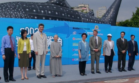 2002.05.03 下午,「2002攜手保鯊魚」(shark friendly taiwan)系列活動於台北市大安森林公園舉行該系列活動正式啟動之記者會。 |
