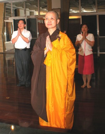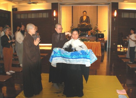 2002.05.19 農曆四月初八佛誕日上午,剃度典禮--法印講堂張瓊玲居士,禮見岸法師出家。 |