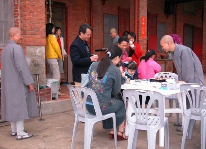 2003.02.01 師父們向鄉親賀年,並招呼小朋友吃糖果。 |