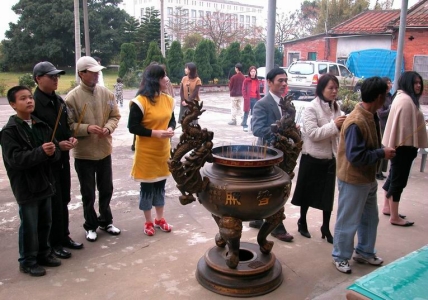 2003.02.01 農曆正月初一,大同村家家戶戶循往例至雙林寺上香祈福。 |