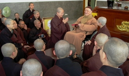 2003.02.16 上午,霧峰護國寺如虛長老於近日閉關圓滿後,率領幾位弟子蒞院普照。 |