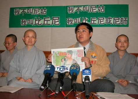 2003.04.25 上午,在立委陳建銘先生陪同下,昭慧法師於召開緊急記者會,嚴厲譴責華視將內容極端下流粗暴,對出家女眾之侮辱甚劇的新聞稿。 |