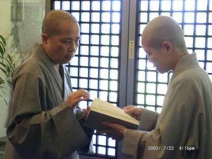 2003.07.05 三峽普陀淨苑開怡法師(左二)、開智法師(左一)來訪。 |