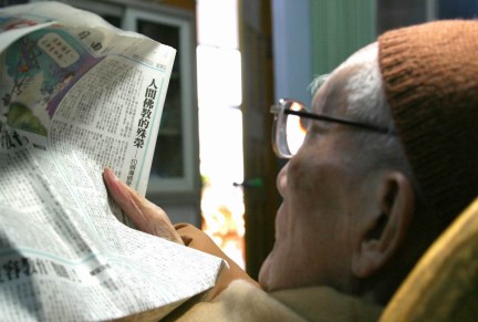2004.03.05 導師專注地閱讀昭慧法師的文章:〈人間佛教的殊榮——印順導師受贈「二等卿雲勳章」原委〉。 |
