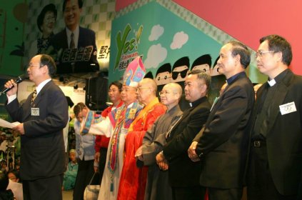 2004.03.16 至超級電視上「魚夫報到」節目,接受魚夫訪談中台政治表態與政教分際。