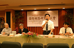 2004.05.01 於靜思堂會議廳召開「國際絲路研究座談會」,慈大文學院院長許木柱教授引言。 |
