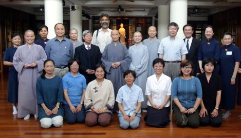 2004.05.02 「國際絲路研究座談會」與會學者在李志夫所長率領之下,前往靜思精舍拜會證嚴法師。 |