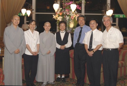 2004.04.25 「人間佛教的藝術展現」座談會(右起:法鼓山陳俊宏建築師、佛光山永本法師、主持人黃麗明老師、妙心寺傳道法師、慈濟王端正副總執行長)。 |