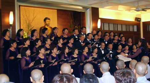 2004.06.12 呂宜庭老師指揮的「東方天籟」合唱團,在畢業典禮上獻唱。 |