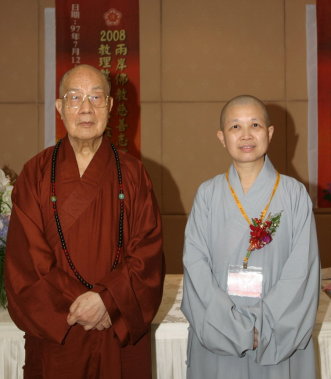 2008.07.12 中佛會理事長淨良長老與昭慧法師於圓山大飯店「兩岸佛教慈善志業論壇暨教理教團教史學術研討會」會場前合影留念。 |