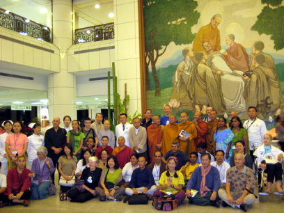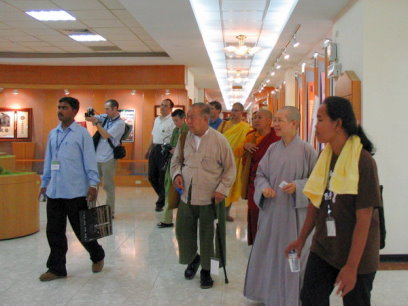 96.7.30 游祥州教授(左二)、陳枚槐(右)伉儷,偕同澳洲籍的mr. david reid(左),代表「國際入世佛教協會」請本院擔任共同主辦單位,提供年會與論壇之場地。(右二:本院護法張莉筠居士)。 |