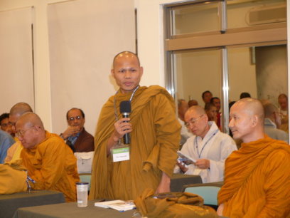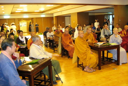 中立者:為了理念而拒喝咖啡的ven. taweesak(攝於96.8.31晚間,與會人士自我介紹時)。 |