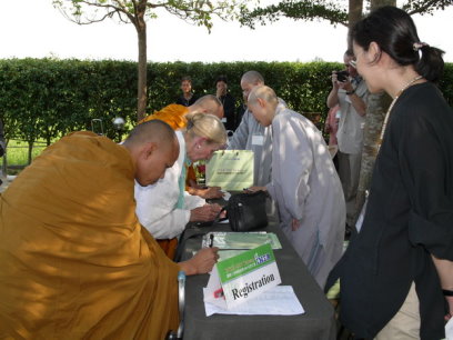 96.8.31 國際入世佛教協會舉行的「ineb2007年全球大會」本日揭幕。慈暉台的報到處好不熱鬧。 |