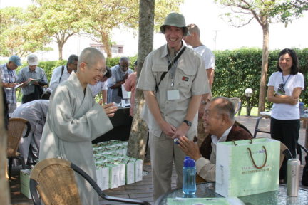 96.8.31 ineb會長ajarn sulak 蒞院簽到後,於慈暉台悠閒而坐,昭慧法師驅前接駕(後立戴帽者為其秘書david reid)。 |