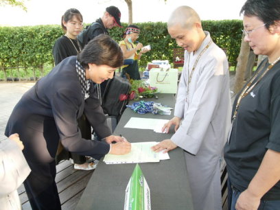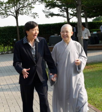 96.8.31 葉菊蘭秘書長在昭慧法師陪同下,前往法印樓開幕會場。 |