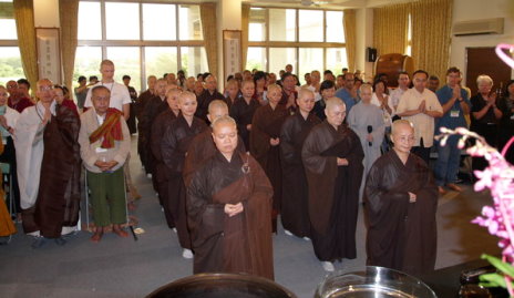 96.8.31 開幕典禮開始,學團法師魚貫出列,啟唱莊嚴的爐香讚。 |