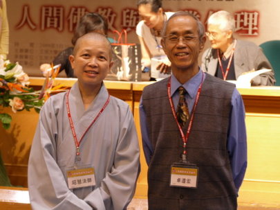 98.5.31 閉幕典禮後,卓遵宏教授(右)與昭慧法師合影。 |