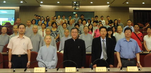 98.6.1 專題演講結束後,全體合影留念。(前排右起:黃運喜教授、黃夏年教授、王雷全教授、昭慧法師、蔡翊鑫教授)。