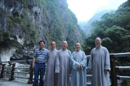 98.6.3 遊覽花蓮太魯閣國家公園。(右起:彰妙、昭慧、耀行、堅意法師、徐弢教授)。