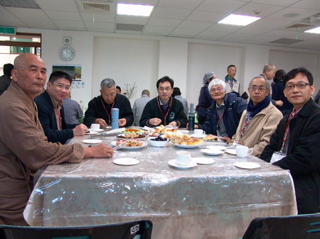 2011.3.12 印順導師門下的師生、學友藉這殊勝的因緣相聚(左起:得圓法師、李念祖老師、薛順雄教授、黃文樹教授、侯坤宏教授、卓遵宏教授、闞正宗教授)。 |