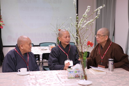 2011.3.12 長期護念本院的(左起)仁慧長老尼、真理法師、常光法師亦在此歡聚談話。 |