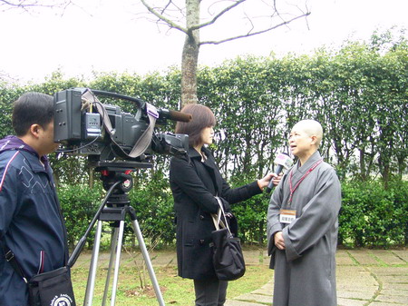 2011.3.12 法界衛星主播賴伊容小姐來院採訪本次學術會議,於庭園中訪問昭慧法師。 |