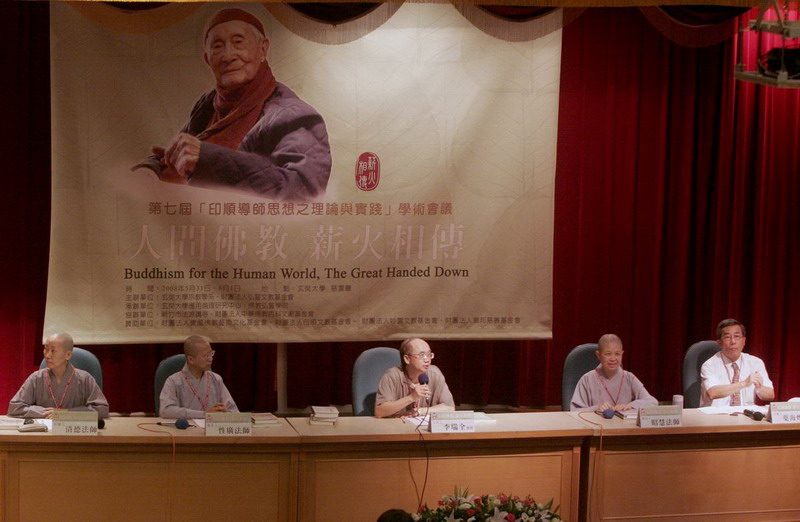 97.5.31 第一場新書發表會(左起:回應人清德法師、發表人性廣法師、主持人李瑞全教授、發表人昭慧法師、回應人葉海煙教授)。 |