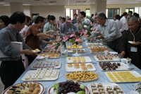 95.5.20 來賓於中場茶敘時間,歡喜地在慈雲廳前大堂享用美味的茶點。 |