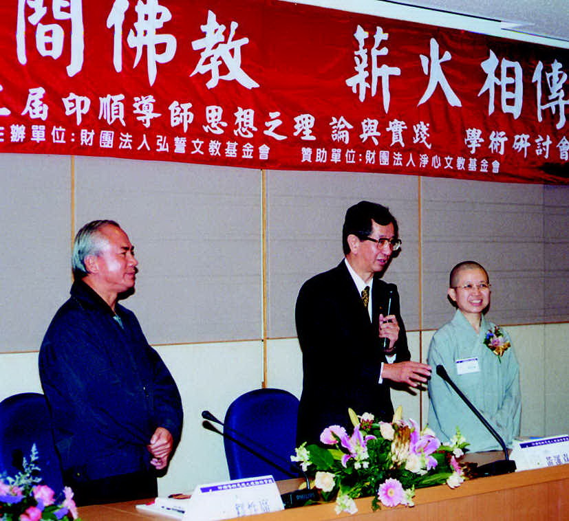 90.3.31 於中央研究院舉辦第二屆「人間佛教,薪火相傳」──印順導師思想之理論與實踐學術研討會,開幕典禮中大會主席性廣法師致詞。 |