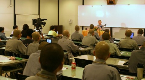 7.31起一連九日,性廣法師至高雄六龜大行寺,主持結七共修禪觀法會。本次禪七由大行寺住持傳燈法師、監院圓慈法師全力支持,提供場地與人力、財力支援,高雄推廣部主任見岸法師與見融法師、諸學員擔任護七工作。參加學員計82位。禪七共修圓滿日,全體合照剪影(中坐右起:圓慈法師、傳燈法師、性廣法師、見岸法師)。 |