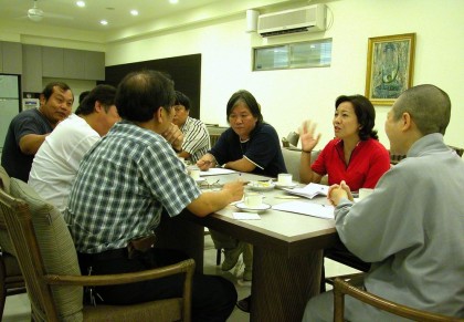 2004.07.29 昭慧法師為法界衛視空中佛學院所作之「唯識學專題講座」,由於錄影的過程要求完整性,所以前八日都是單向教學一氣呵成,無法問答討問,因此法師特留最後一日(30日)上午,於嵐園舉行座談會,與學員在茶敘之中,作雙向之交流,氣氛溫馨,討論過程非常熱烈。 |