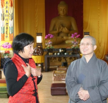 2005.01.31 學團師生至高雄市鼓山參觀新落成之佛寺文教會館,林蓉芝秘書長(左)親自接待、導覽。 |