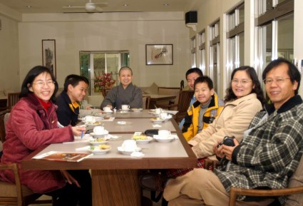 2005.01.23 核四公投志工十四人蒞院參訪,並於嵐園茶敘,針對時勢與社會現象,廣泛交換意見,並深入討論有關「丹大開放狩獵」之正反觀點。志工們對法師所提出的「反對開放狩獵」理由深表認同,並主動留下通訊資料,願在法師發起抗爭活動時,共襄盛舉。 |