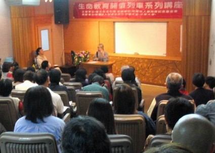 2005.05.06 昭慧法師應鄭再傳紀念基金會之邀,在新竹市立文化中心作專題演講,講題是:「佛教的生命哲學」。現場座無虛席,演講結束之後,仍有許多民眾前來交談。 |