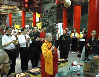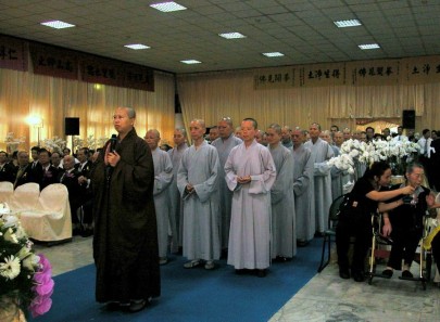 2005.06.10 在台北第一殯儀館景行廳,舉行李連春老先生之公祭大典。李老先生係本院護法李芳枝居士之令尊,白手起家,事業卓有成就,望重商界。李芳枝原已邀請昭慧法師於本日公祭大典中說法,但由於昭慧法師下午於福嚴精舍參加印順導師大體入殮儀式,乃改由性廣法師向大眾說法。是日,性廣法師率學團師生三十多人,參加李老居士之公祭大典。 |