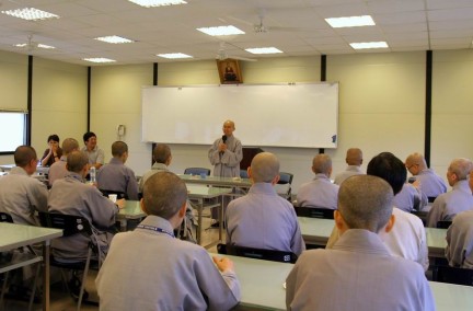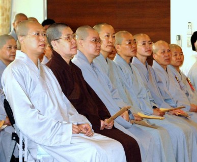 2005.06.18 下午,本院畢業校友回院,舉行第二屆校友會。由於前任會長(第一屆專修部校友)融慎師父身體欠安,故請辭並推舉研究部自憲法師擔任第二屆校友會會長,吳一忠擔任秘書,田碧桑任財務組長。 |