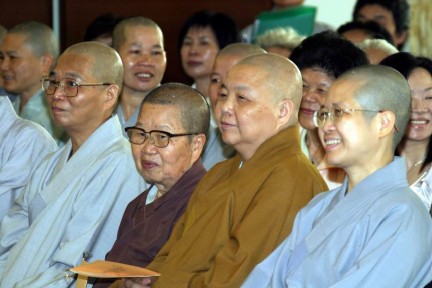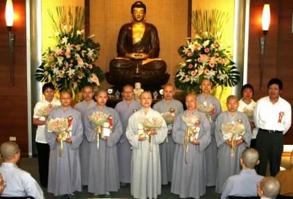 2005.06.19 本院舉行專修部第三屆畢業典禮,前排學生師長右二起:慧哲、法宗、性慧法師。 |