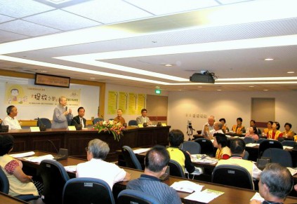 2005.06.25 本月25、26日與7月2、3日,分別於佛光山蘭陽別院、台北道場、佛光山與福山寺,各舉行一場「捉放之間—動物放生管制宣導說明會」,共計全國四場,請各界專家學者,分別從佛教觀點、生態學觀點與動物保護觀點,看今日之放生行為,並分析放生行為可能觸犯的法律。主辦單位是行政院農業委員會,承辦單位則為保護動物協會與國際佛光會中華總會(前排右起:保護動物協會黃慶榮秘書長、蘭陽別院住持滿禎法師、主持人前台北市立動物園朱錫五園長、昭慧法師、台灣野鳥資訊社吳森雄社長)。 |