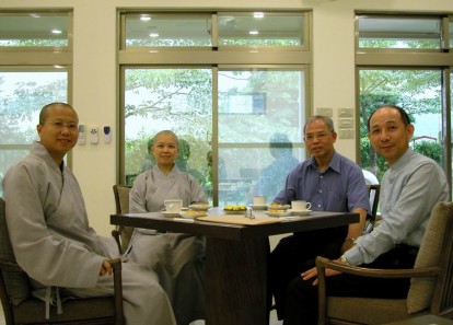2005.06.28 淨心文教基金會董事長蘇振輝居士,協同楠弘貿易公司陳世杰副總經理,蒞院拜會昭慧、性廣法師,禮請性廣法師繼續擔任該基金會導師,並且請示法益。蘇居士是楠弘貿易公司董事長,曾以德國環保衛浴設備捐贈本院校舍,此次知悉即將建築新校舍,亦表示將大力護持,同樣贈與衛浴設備。 |