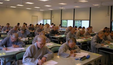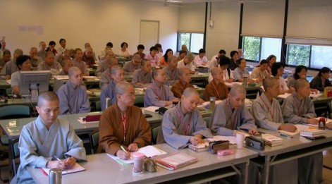 2005.07.04 自本日起一連十天,本院研究部暑期課程,敦請悟殷法師講授「部派佛教」專題講座。由於悟殷法師的部派佛教研究,在教界有口皆碑,所以課程難度雖高,本次依然有70位學員報名上課,學員濟濟一堂,座無虛席,討論氣氛亦相當熱烈。悟殷法師還不時以佛法正見,勉諸學員三學增上,將佛法落實於生活之中,令大家甚為感動。 |