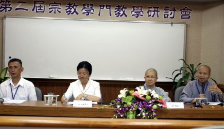 7月4日至6日,慈濟大學宗教與文化研究所主辦第二屆「宗教學門教學研討會」,以「宗教經驗」的課程設計與教學為主題。本日下午,慈大文學院盧蕙馨院長主持「傳統宗教的實修體驗」座談會,邀請法光佛研所蕭金松老師、昭慧法師與性廣法師擔任引言人,三位引言人提供其在宗教系所或通識課程中所教授的相關課程大綱。性廣法師並提供論文〈專注力的培養〉,分享其「生命教育」或佛學通識課程中,提供超越宗教藩籬之「念息法」,以教導學生培養專注力與平靜心靈的教學心得。 |