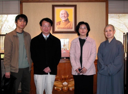 2006.04.11 月11日全日與12日上午,昭慧法師與筆者應王雷泉教授之邀,在上海復旦大學舉行的演講與專題討論會擔任主講人。本次「港臺著名佛學文化學者系列邀請演講會」,由復旦大學宗教研究所、學源俱樂部、復旦大學禪學社與復旦大學科學研究宗教協會聯合主辦。除了昭慧法師與筆者之外,4月17日將有南華大學文學院長慧開法師,以及香港理工大學潘宗光校長,分別演講「東西方宗教生死觀」與「佛教的現代觀」。11日上午的小型專題討論會,在文科大樓五樓哲學系多功能廳舉行。兩人均主講「佛學研究方法論」,但昭慧法師側重在談述普遍的佛學研究法,並特別拈出「經驗檢證」與「邏輯實證」這兩項基礎研究方法,分析其有效性與其功能局限。筆者則側重在介紹禪學研究法與禪觀修持法(性廣法師於復旦大學專題演講,王雷泉教授擔任主持人)。 |