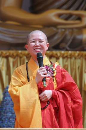 2006.03.19 上午,昭慧、性廣法師應法界衛視之邀,南下高雄市勞工公園,參加法界衛視慶祝創台十週年所舉行的「全國供佛齋僧點燈祈福大法會」,於台上與諸山長老、長老尼、貴賓大約百人共同點燈。本次大會,席設三百六十齋桌以供養四千僧眾,居士則多達萬人以上,場面甚為壯觀。世界華僧大會會長淨心長老、中國佛教會理事長淨良長老皆應邀於大會中致詞。昭慧法師代表法界衛視空中佛學院教師致詞表示,居士承擔弘法事業,人力、財力的取得都較為困難,而法界衛視以一群居士的虔誠願力,竟然感召得諸山長老法師與大德居士的護持,讓空中弘法事業維持了十年,誠屬奇蹟。她並指出:親近善士、多聞熏習,這是「四預流支」的前二支,易言之,即是轉凡成聖四項條件中的前兩大要件,而法界衛視打破了空間的隔礙,讓所有人在家中客廳,就能親近各方明師善知識,聽聞佛陀教法,修習二預流支,誠屬功德難量! |