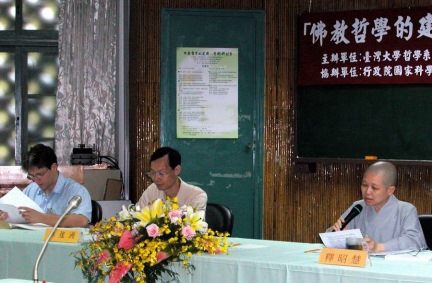2006.05.27 ,台灣大學哲學系舉行「佛教哲學的建構」學術研討會。上午第二場研討會由林煌州教授主持,昭慧法師與德國學者康特教授發表論文。昭慧法師發表的論文,題為「系統理論之交集與歧義—重點比較:原則主義與非原則主義」,康特教授論文題為「大乘佛教救度學與宗教哲學之間的關係」。聽眾的提問,大都針對昭慧法師論文而來,法師一一予以簡潔的回應,頗受好評。 |