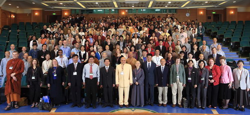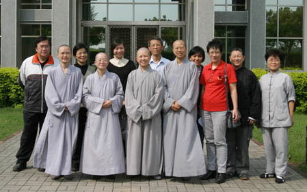 2007.10.21 20、21日,台灣哲學學會於東海大學人文大樓,舉辦年會暨「價值與實在」哲學研討會。本日下午的第八場研討會,由昭慧法師主持,發表論文有二篇:林鎮國教授的〈object of cognition in dignaga's alambanapariksa-vrtti: on the controversial〉,評論人是南華大學宗教學研究所何建興教授;禪印法師的〈檢視<雜阿含經>無常法門的作用〉,評論人是華梵大學哲學系冀劍制教授。台灣哲學學會於東海大學舉辦年會,招待來賓的東海碩士生與昭慧法師合影於人文大樓之側。 |
