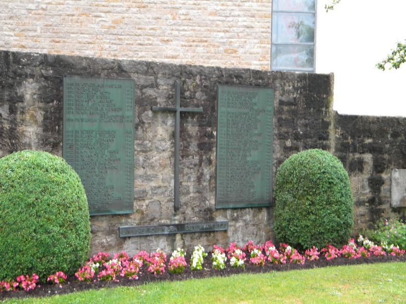 兩次世界大戰被殺修士的紀念碑銘,靜靜地座落在本篤會士墓園中。(100.6.6)