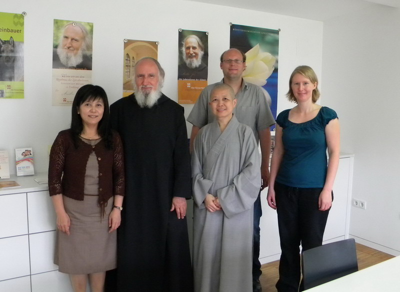 在本篤修會四塔出版社會議室中合影留念。(100.6.7,左起:吳信如、古倫神父、昭慧法師出版社主編gahr博士、出版社秘書)